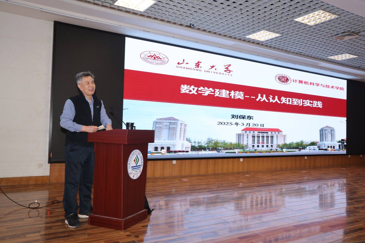 启动仪式后,刘保东教授以《数学建模—从认知到实践》为题作精彩报告,为师生们带来了一场思维盛宴。刘教授从案例出发深入浅出地讲授了数学建模的核心逻辑和求解思路,讲解内容兼具理论性与实操性,答疑环节师生交流热切,现场引起阵阵掌声。