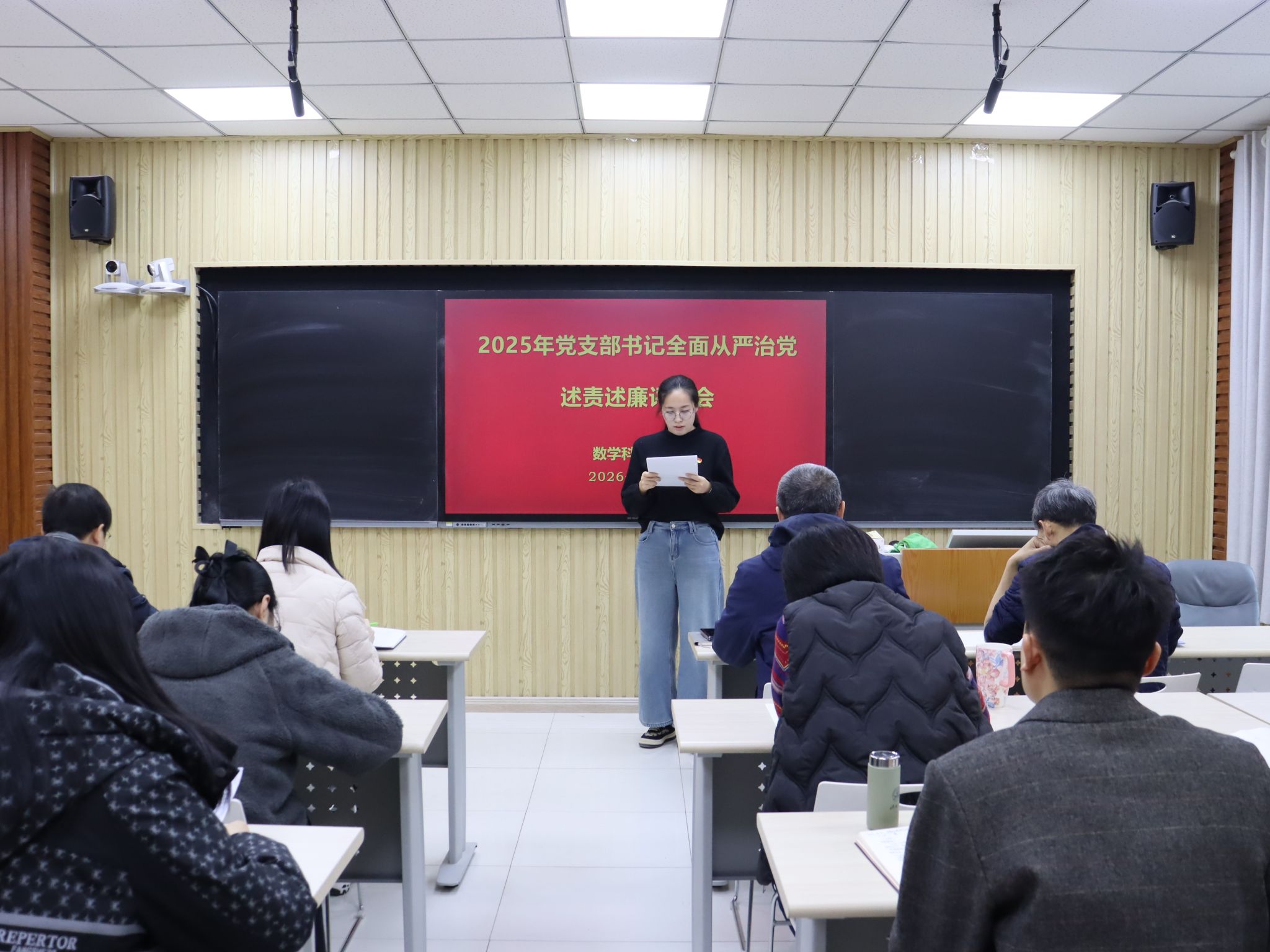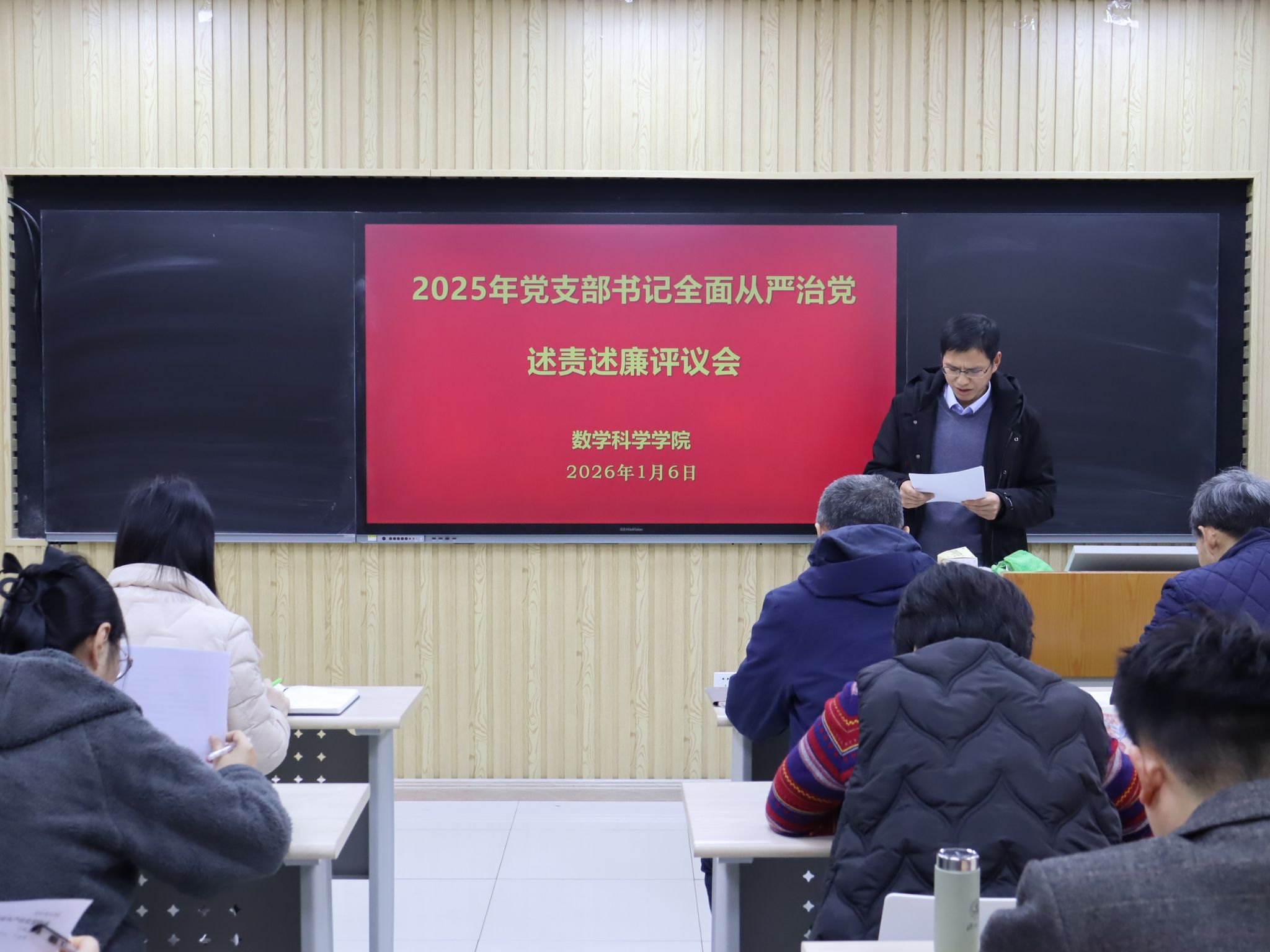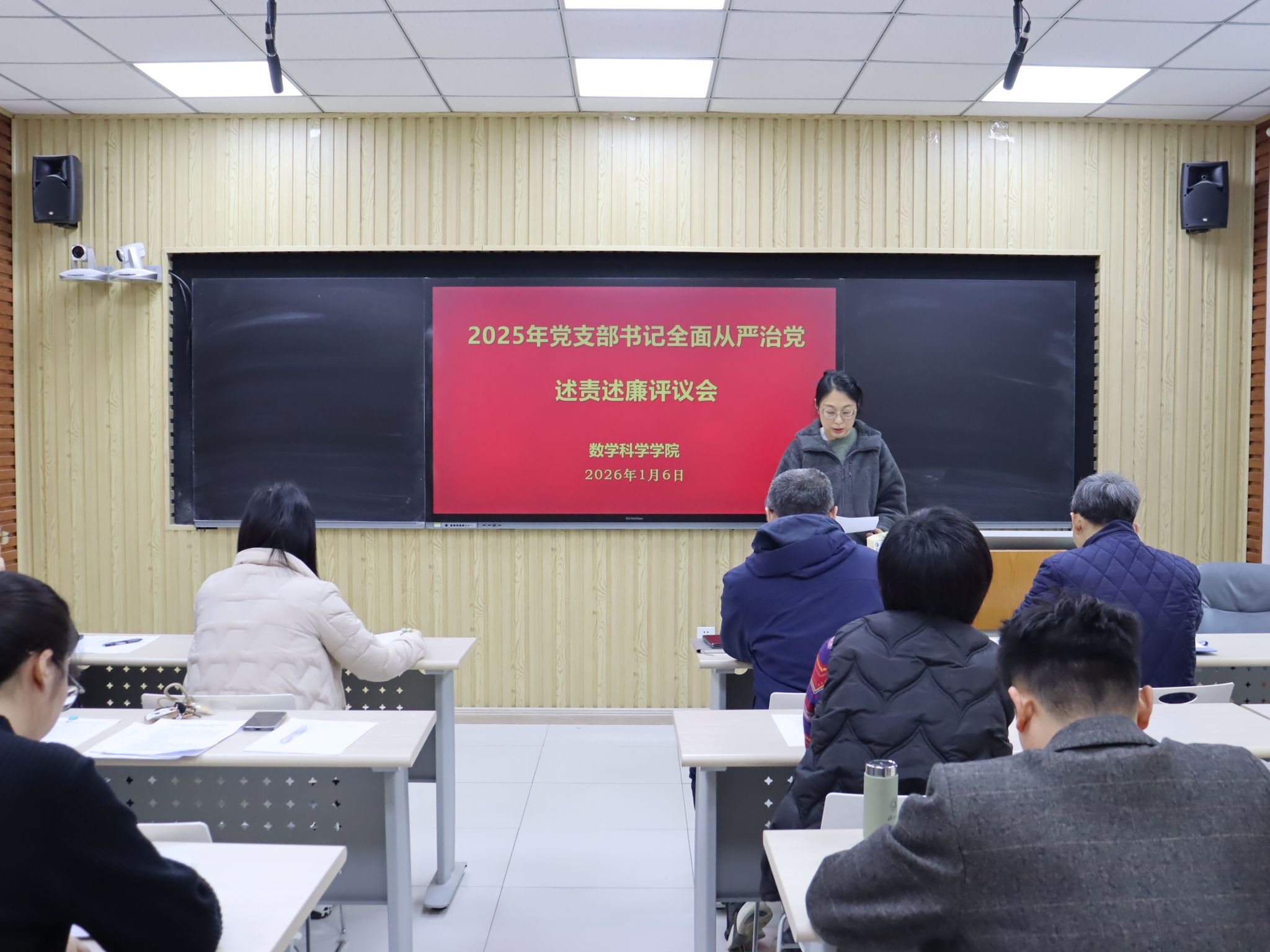 共有6个教工党支部和5个学生党支部参加此次评议工作。前期学院党委对各党支部的述责述廉材料进行了把关。会上,各党支部书记围绕带头落实管党治党责任情况和意识形态工作责任制,从加强政治建设、组织建设、作风建设和纪律建设入手,进行全面从严治党述责述廉。学院党委书记崔英静采取“一述一评”方式逐一进行点评,并在述责述廉全部结束后讲话提出要求。她强调,各党支部书记要时刻保持党支部全面从严治党“第一责任人”的岗位职责,落实好“第一议题”制度,深入学习贯彻党的二十大和二十届历次全会精神,锲而不舍落实中央八项规定精神,认真履职,加强意识形态阵地管理,带领支部积极发挥战斗堡垒作用和党员的先锋模范带头作用。学院领导班子成员参会并对党支部书记进行现场打分评议,评议结果经学院党委研究后,将在一定范围内对评议结果进行公示并按要求报学校党委。