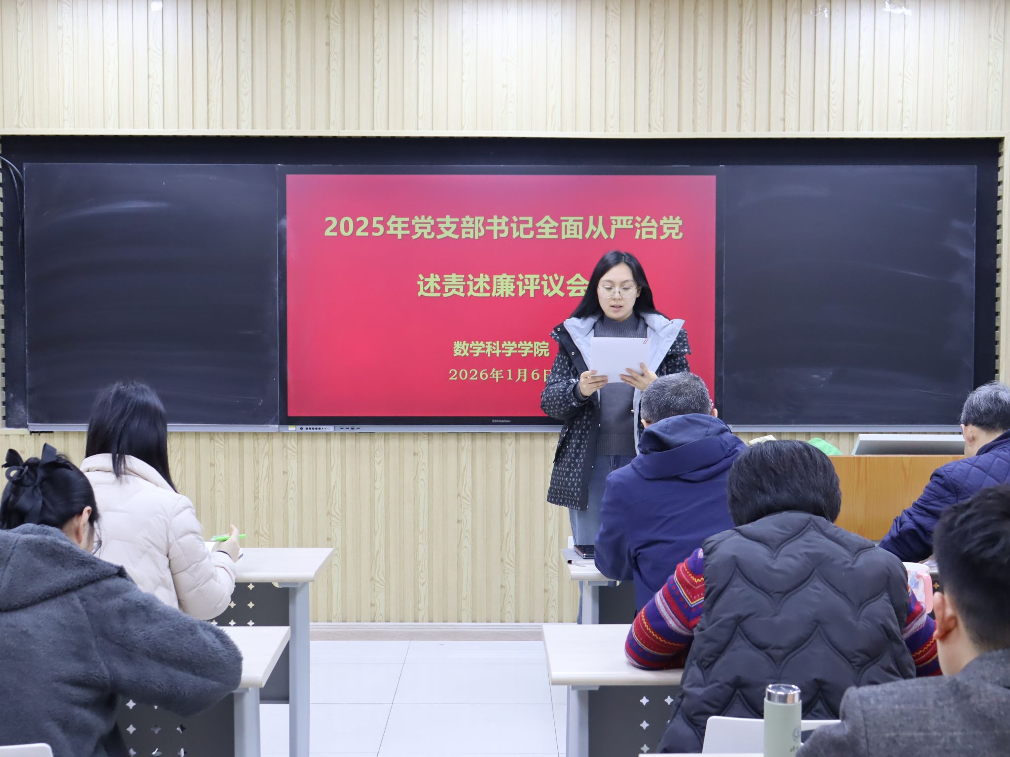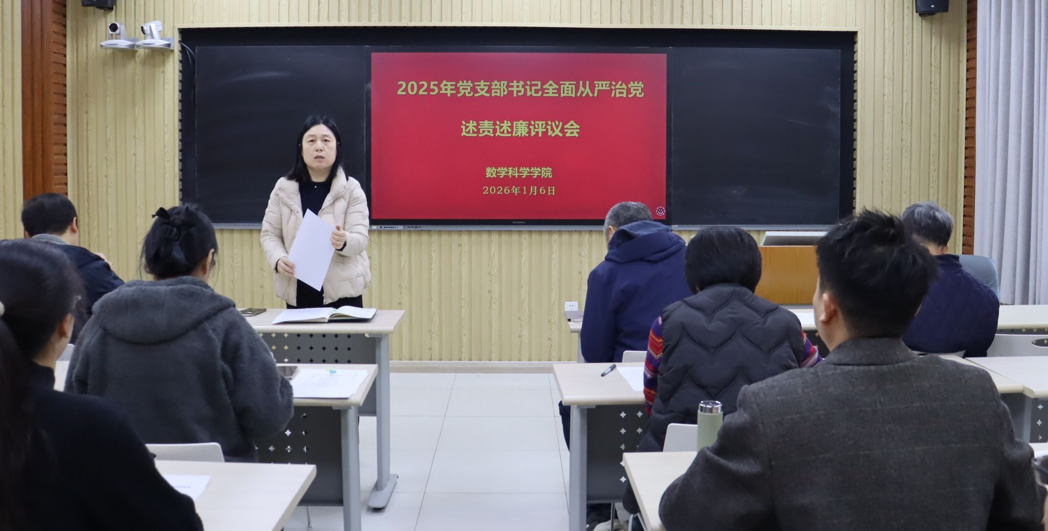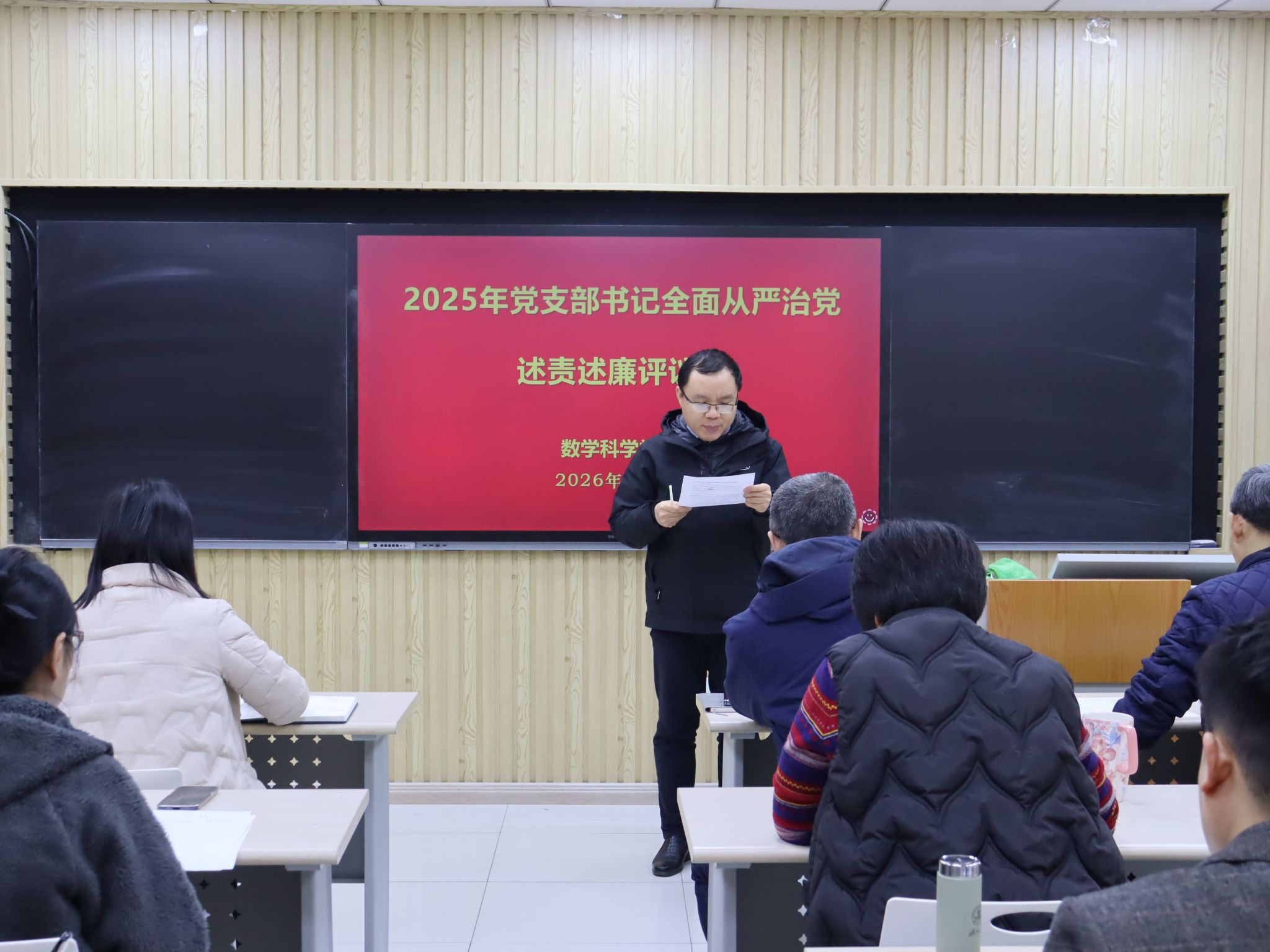 共有6个教工党支部和5个学生党支部参加此次评议工作。前期学院党委对各党支部的述责述廉材料进行了把关。会上,各党支部书记围绕带头落实管党治党责任情况和意识形态工作责任制,从加强政治建设、组织建设、作风建设和纪律建设入手,进行全面从严治党述责述廉。学院党委书记崔英静采取“一述一评”方式逐一进行点评,并在述责述廉全部结束后讲话提出要求。她强调,各党支部书记要时刻保持党支部全面从严治党“第一责任人”的岗位职责,落实好“第一议题”制度,深入学习贯彻党的二十大和二十届历次全会精神,锲而不舍落实中央八项规定精神,认真履职,加强意识形态阵地管理,带领支部积极发挥战斗堡垒作用和党员的先锋模范带头作用。学院领导班子成员参会并对党支部书记进行现场打分评议,评议结果经学院党委研究后,将在一定范围内对评议结果进行公示并按要求报学校党委。