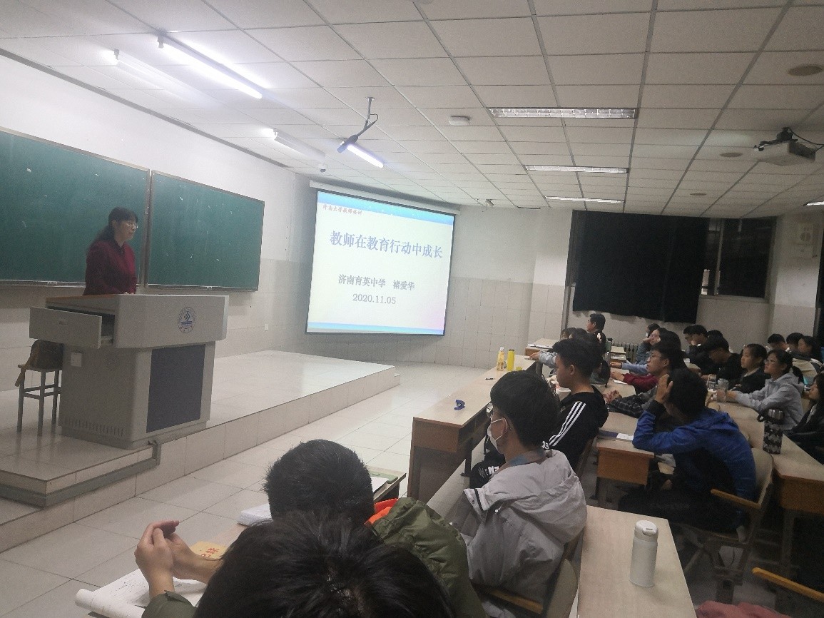 2020级数学与应用数学专业学生做了题为“教师在教育行动中成长”的精彩报告,报告由学院正处级组织员韩振来主持,127名同学聆听了报告。