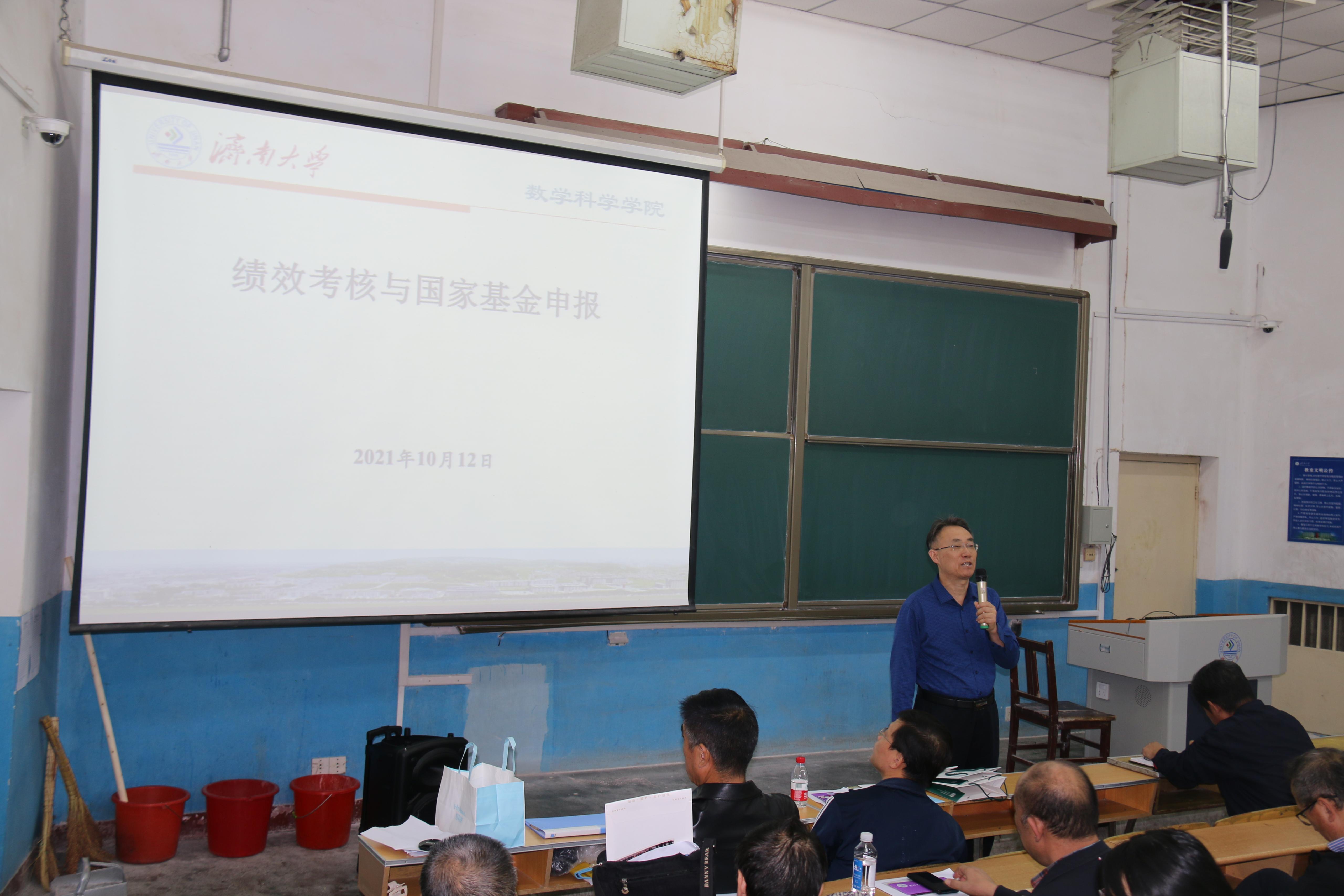 中层干部年度考核办法》等文件,重点解读了学院2021年教学、科研、对外交流、科技创新、学生考研率等具体考核指标任务,并就如何保证完成年度工作任务提出了要求。随后,管院长梳理了“十三五”期间校院国家自然科学基金申报情况,总结表扬了学院在“十三五”基金立项的优异表现,全面介绍了“十四五”开局之年学校国家自然科学基金的申报以及立项情况,重点介绍了学院2022年国家自然科学基金申请的初步思路与想法。