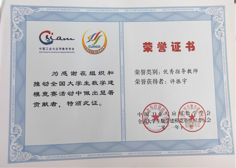数学建模指导中心主任,全面负责数学建模竞赛培训工作,并担任主讲教师,带领建模团队教师,大胆探索改革培训模式,编写校内培训讲义,细化培训流程,改进模拟训练阶段教师指导方法,强化建模竞赛宣传工作,指导学生建模协会工作,创办漫画腐
