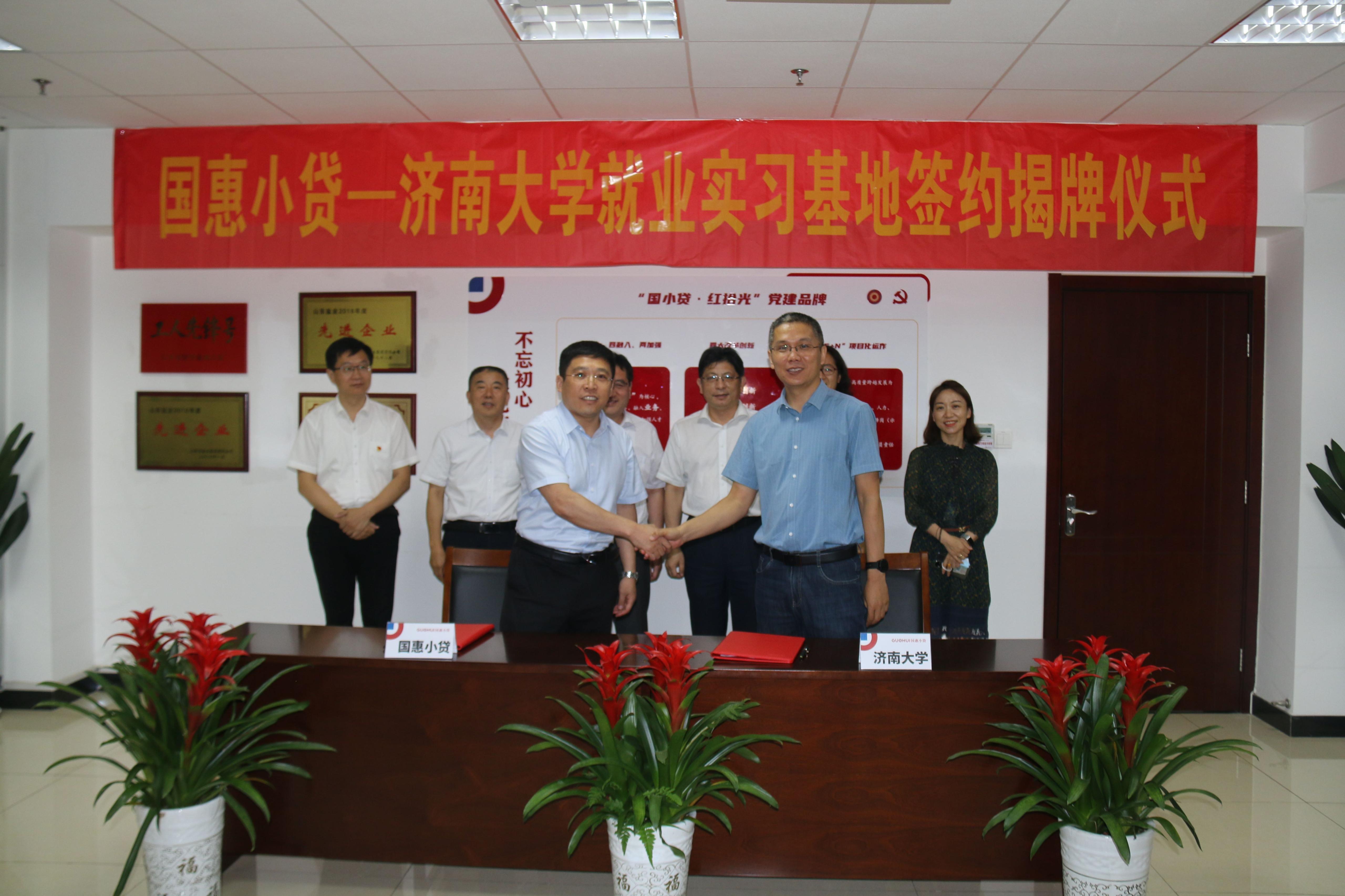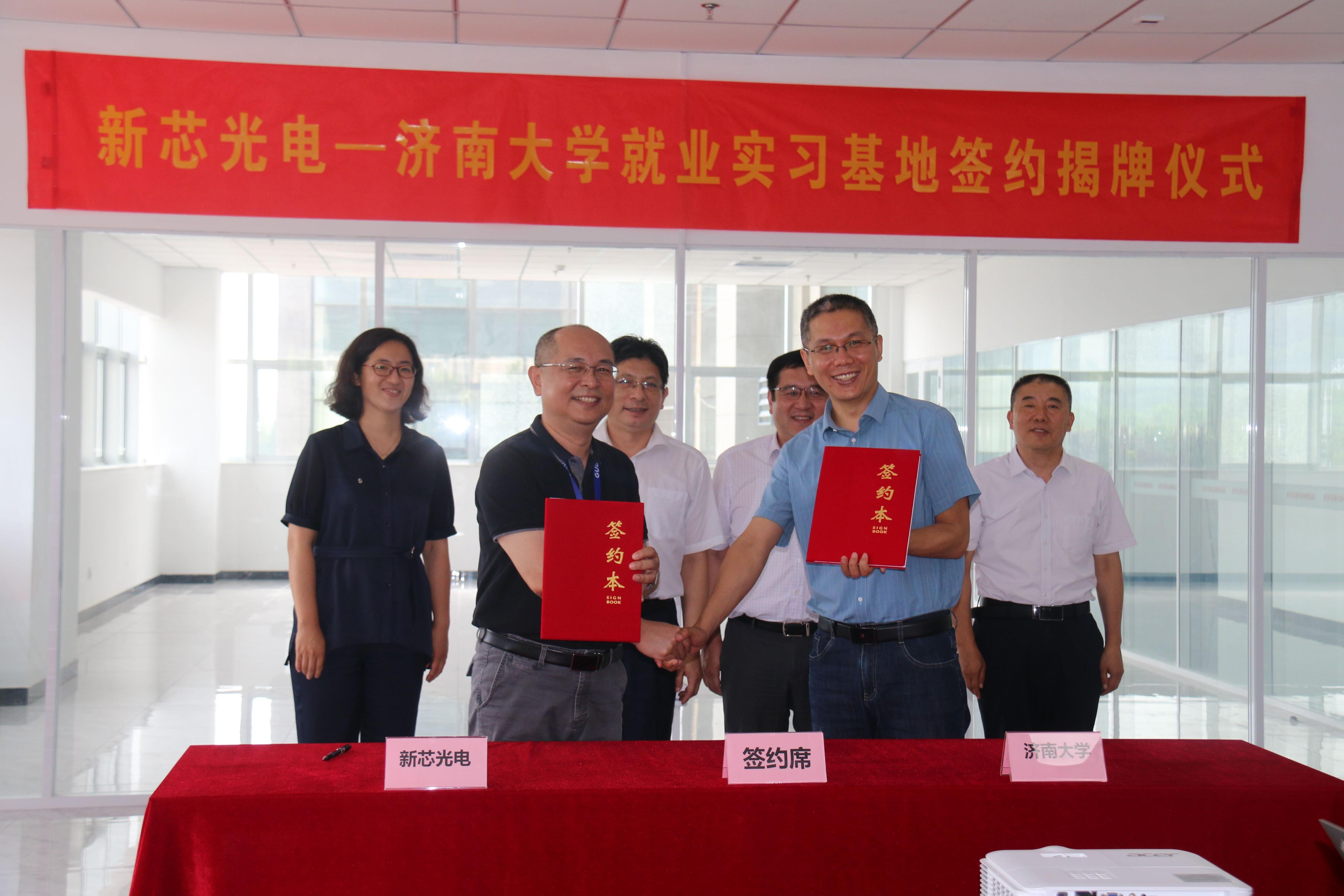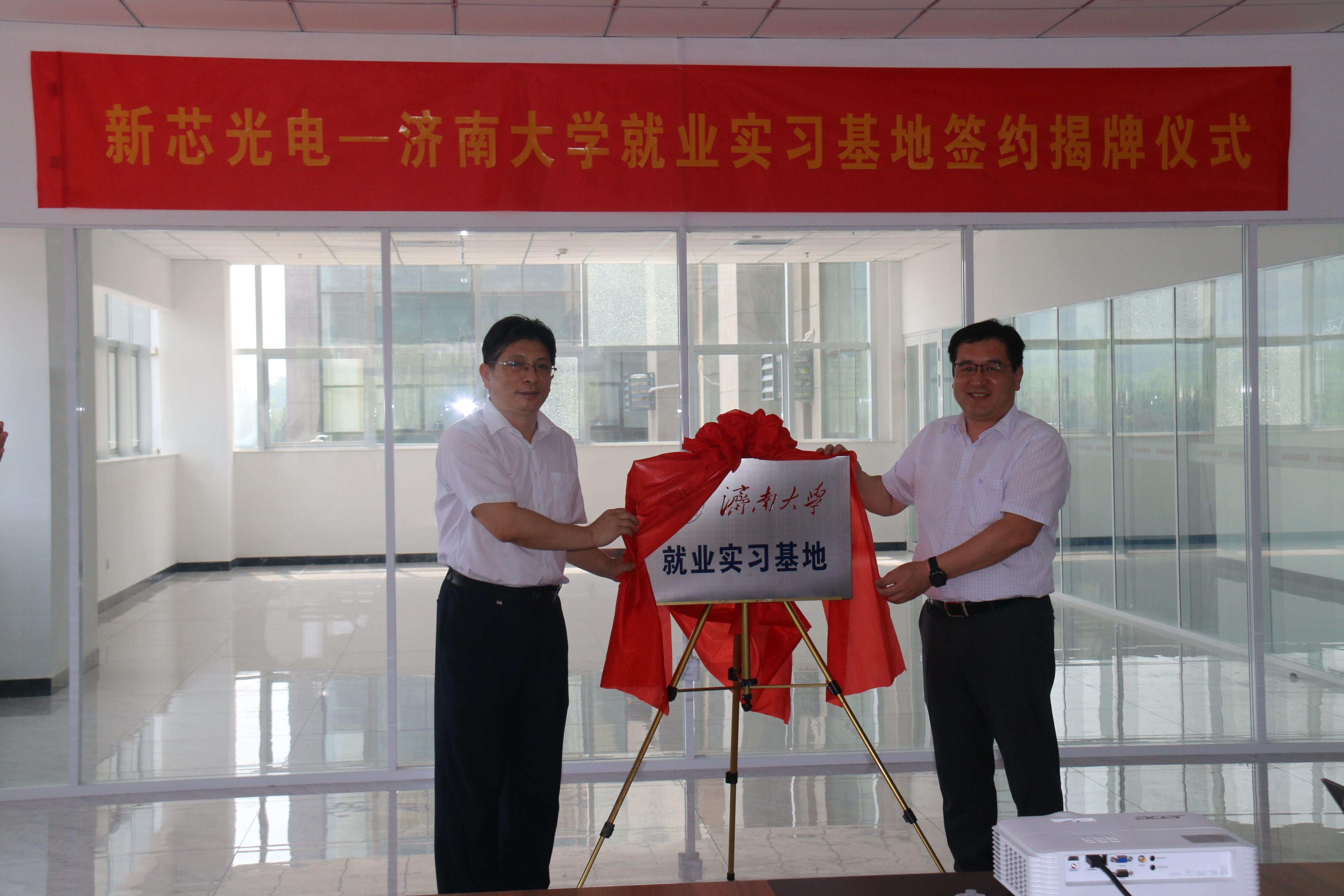 与山东国惠集团直属企业新芯光电和国惠小贷共建就业实习基地签约暨揭牌仪式分别在新芯光电和国惠小贷会议室举行。学校副校长杨景波,山东国惠集团总助、国惠小贷书记、董事长兼任新芯光电书记、董事长杜冰,新芯光电总经理沈镇,国惠小贷副书记、董事、总经理单一春出席活动。集团相关部门负责人、学院相关负责人参加活动。