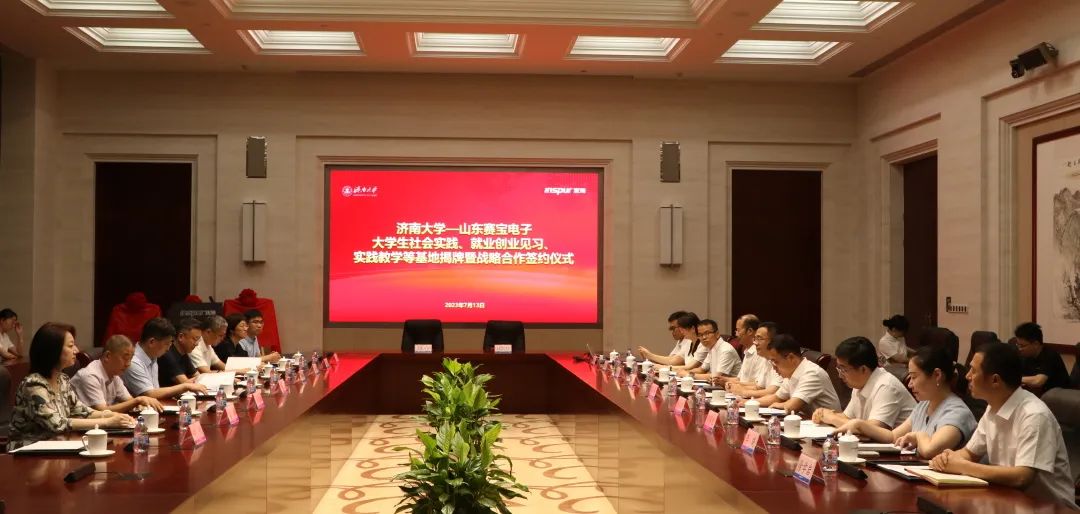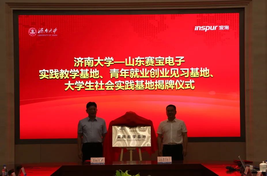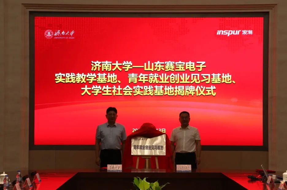 实践团师生,并与山东赛宝电子信息工程有限责任公司举行社会实践、就业创业见习、实践教学基地签约暨揭牌仪式。浪潮科技党委副书记、总经理张峰对杨景波一行的到来表示热烈欢迎,他简要介绍了浪潮科技和山东赛宝电子信息工程有限责任公司近年来的改革发展情况,并表示希望校企双方以此为契机,在产学研结合、应用型人才培养、实践教学、科研攻关等方面深度融合、紧密合作,为打造山东省人才高地、高质量发展高地提供有力支撑。杨景波介绍了漫画腐