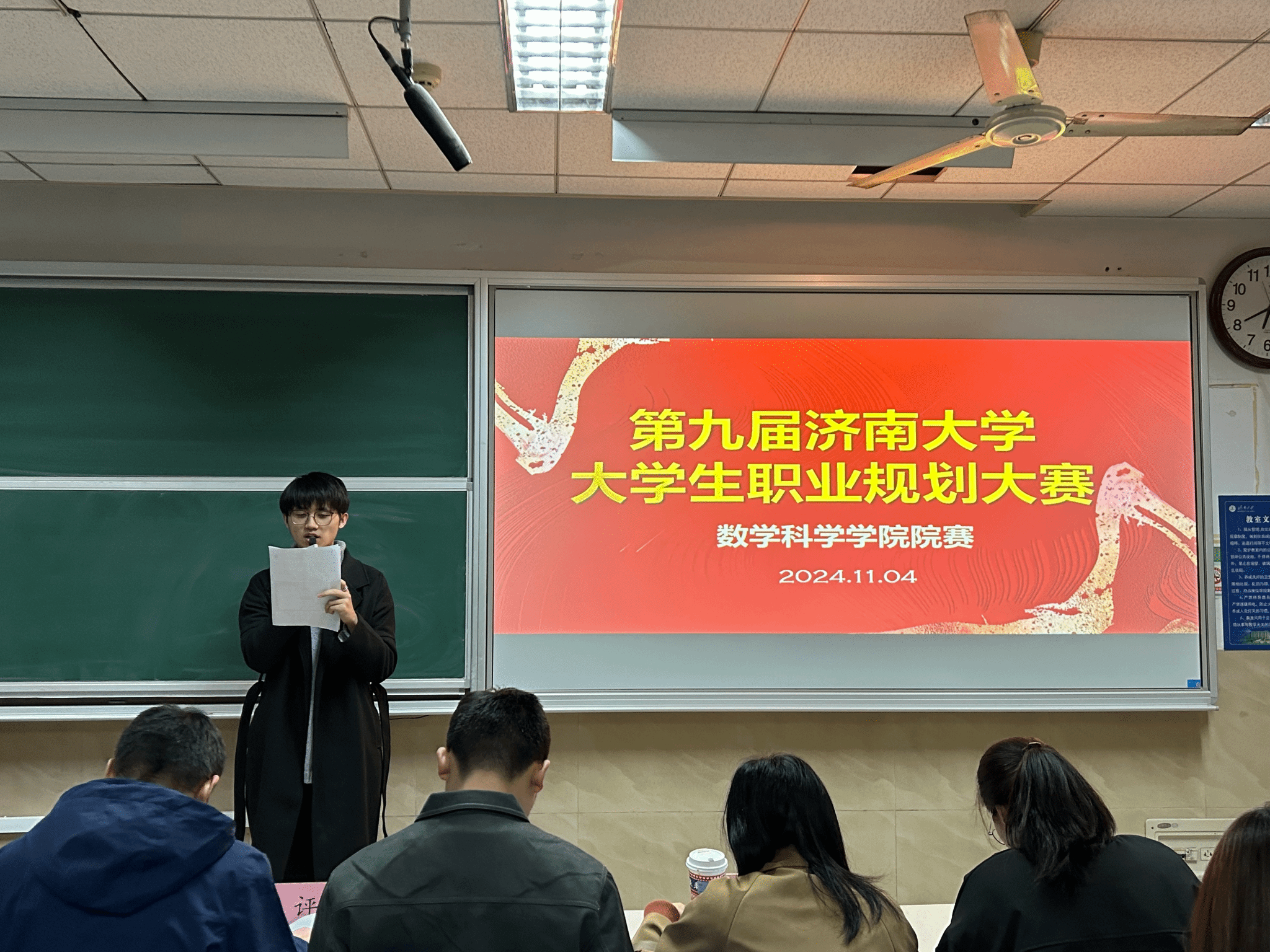 比赛过程中,参赛选手们通过逻辑清晰的演讲和精美的PPT,向观众与评委老师展示了他们对未来的构想和清晰的规划,充分展现了自己的专业素养和综合素质。在职业的选择与探索、计划实施和评估调整上,选手们展现出他们对职业生涯规划的深刻理解,其中,数学2201王聪致力于投身教育行业,立志成为关心学生,爱护学生的辅导员;金数2201吕琦将目光放到金融领域,希望能投身银行,加入证券投资行业。选手们精彩的展示赢得了评委和观众们的阵阵掌声。