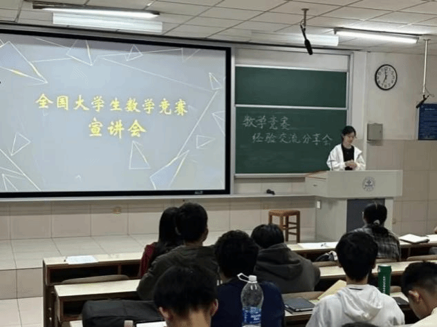 张倩同学和闫肃晶同学根据自己以往的参赛经历以及参加数学竞赛的心得体会,与同学们交流探讨数学竞赛的备赛方法和得分策略,并通过经验分享会的方式鼓励同学们踊跃报名,积极应对竞赛。数院的同学们可以汲取丰富的经验和知识,借鉴其方法和策略,以更好的学科素养与良好心态应对竞赛。