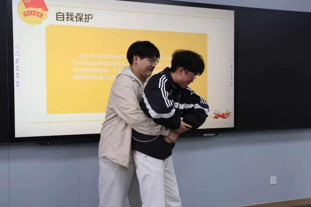 金数2301团支部以“生命之思”为切入点,强调生命的脆弱性及珍贵性,点明保持健康生活方式、培养积极心态的重要性,并开展“心灵树洞”活动,鼓励同学们抒发自己的烦恼与困惑。“心灵树洞”活动挑选同学们困惑程度高的问题进行现场解答,帮助同学们直面问题,提高抗挫能力。随后,主持人宋阳带领同学们观看自我保护的小视频,并由何育昊和崔润麒进行现场演示和教学,情景化的方式让同学们进一步了解如何正确应对突发状况。法律是保护人身安全最有利的武器。宋阳通过介绍电影《第二十条》涉及的相关法律,着重点明正确利用法律保护自己的必要性。新学期,新目标。在会议最后,同学们将新学期的小目标写在彩纸上,并折成自己喜欢的形状,表明同学们对未来的期待,促进同学们健康成长。