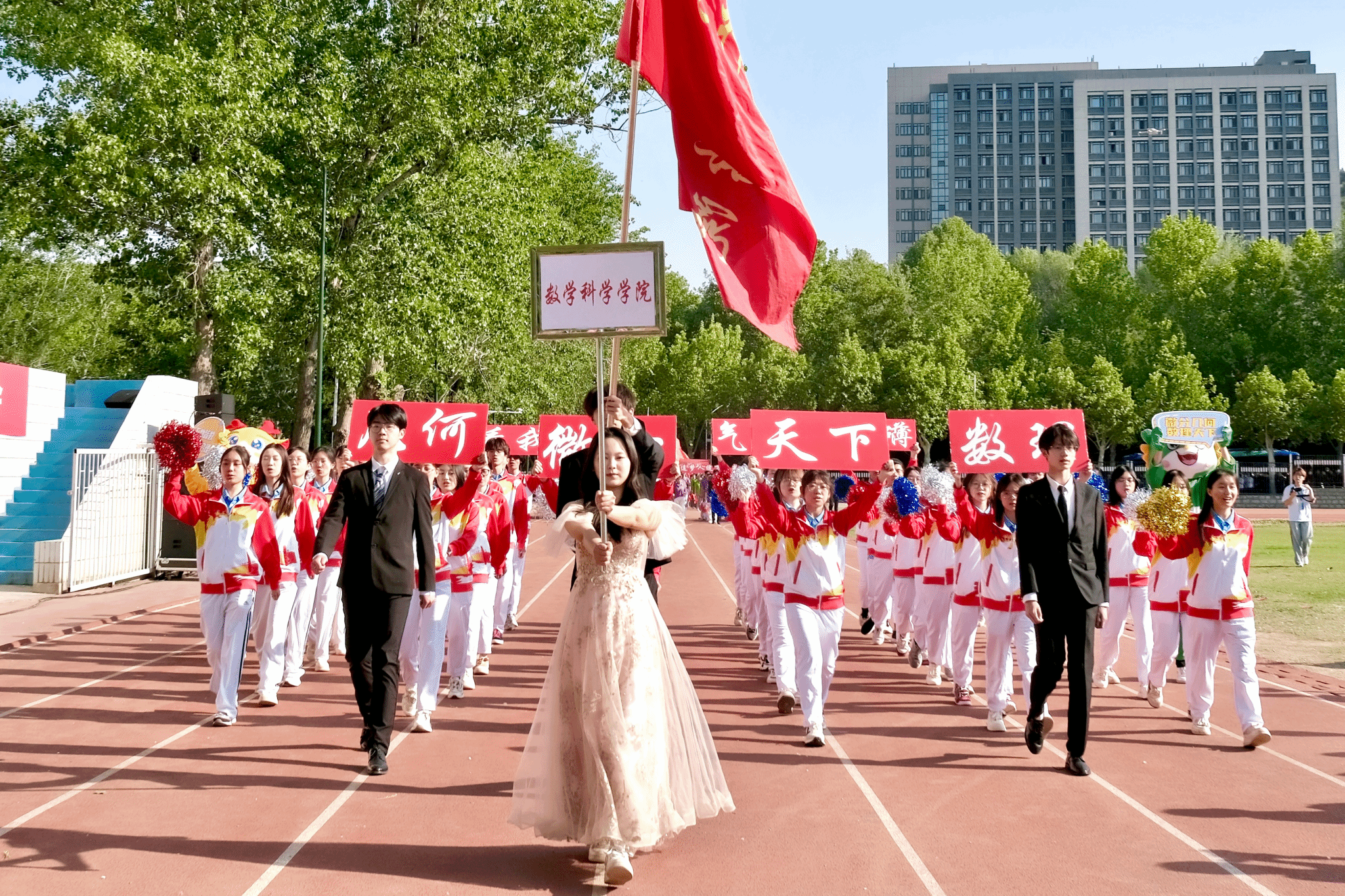 29日上午,运动会开幕式如期举行,漫画腐 师生方阵迎着四月暖阳,步履铿锵、朝气蓬勃。他们手持“数理天下,微分几何,看我数院,气势磅礴”的创意展板,将严谨的学科精神与蓬勃的运动活力完美融合,展现了数学人锐意进取的精神风貌。