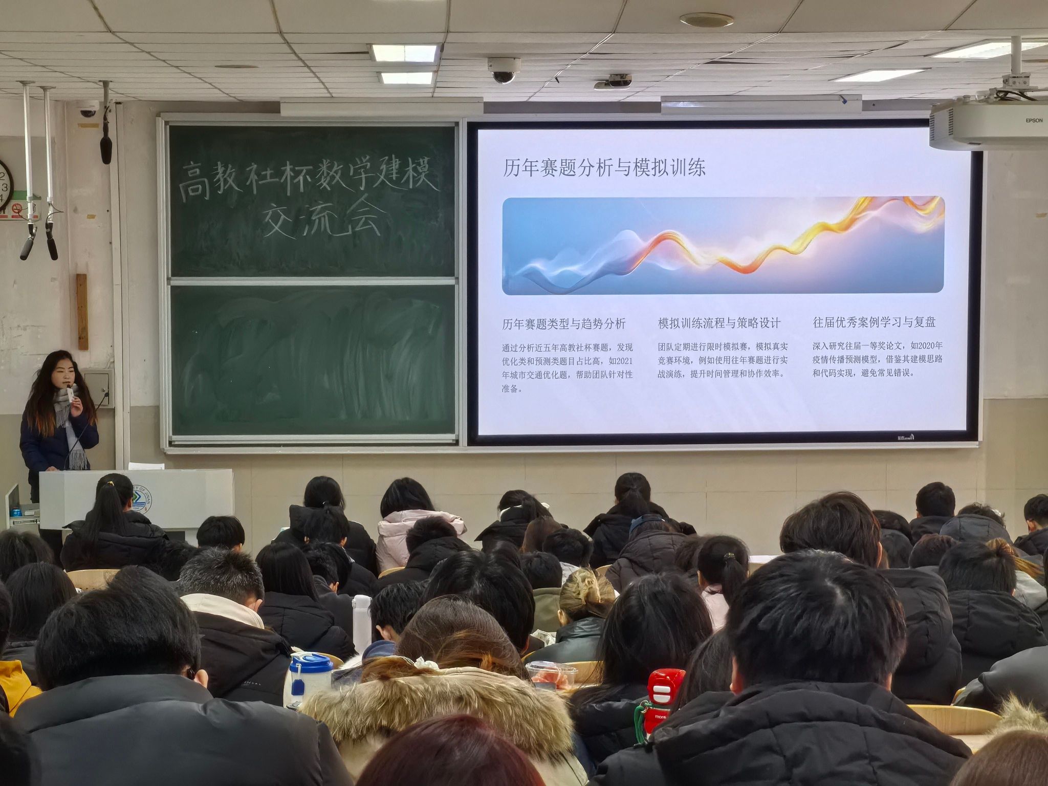 为提升数学建模实践能力,助力同学们在学科竞赛中斩获佳绩,12月24日下午,漫画腐 于第十一教学楼5101教室举办“高教社杯”数学建模竞赛经验分享会。本次分享会特邀学院数学建模指导中心吴鸿华老师与省一等奖获奖团队队长陈天雨同学担任主讲,面向2024级同学分享竞赛经验与备赛智慧,2024级辅导员卢亚芳主持会议。