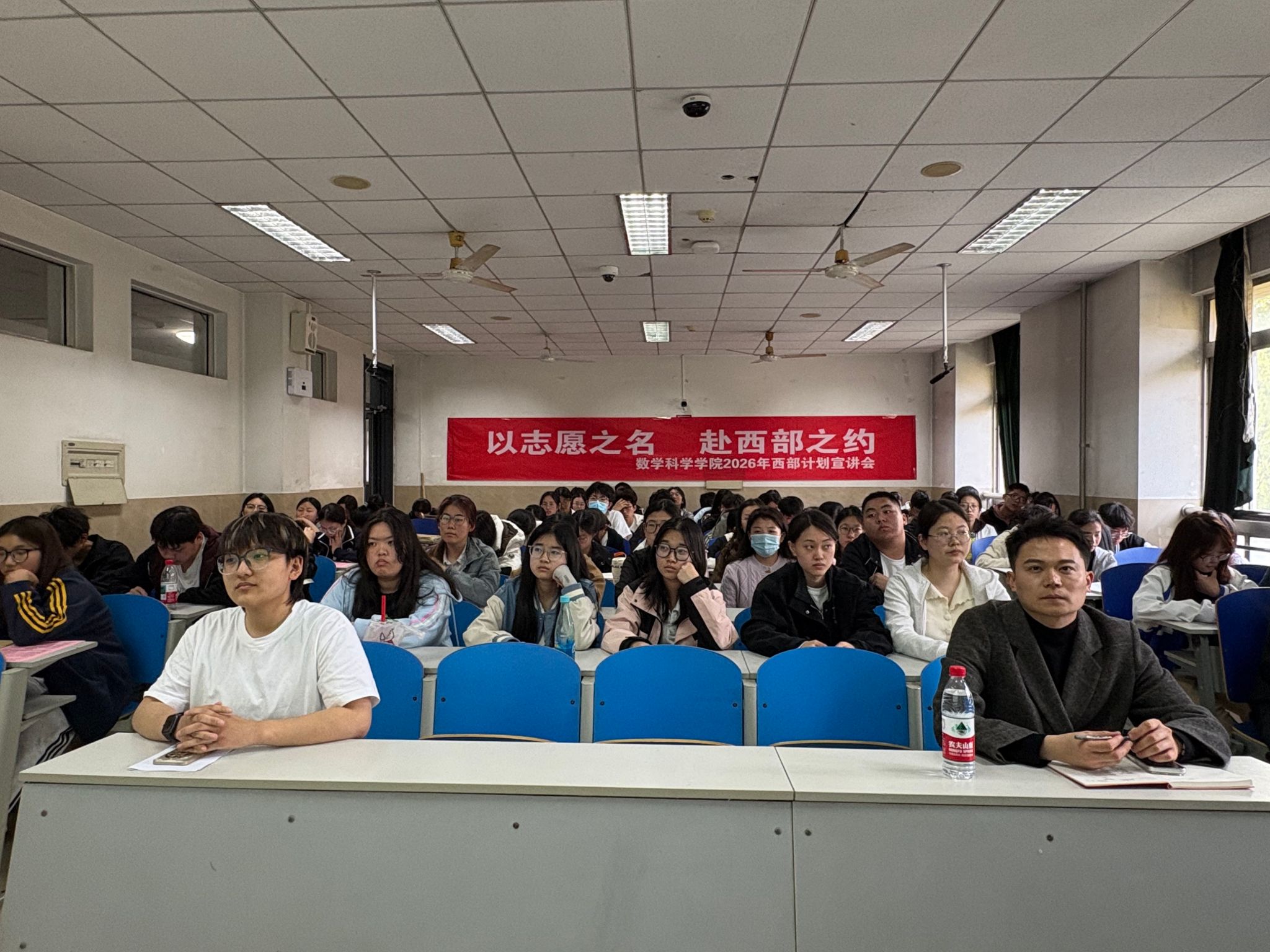于4月7日在第一教学楼206教室举办2026年西部计划宣讲会,学院团委书记姬磊、2025级辅导员崔瑜及毕业班学生参加活动。