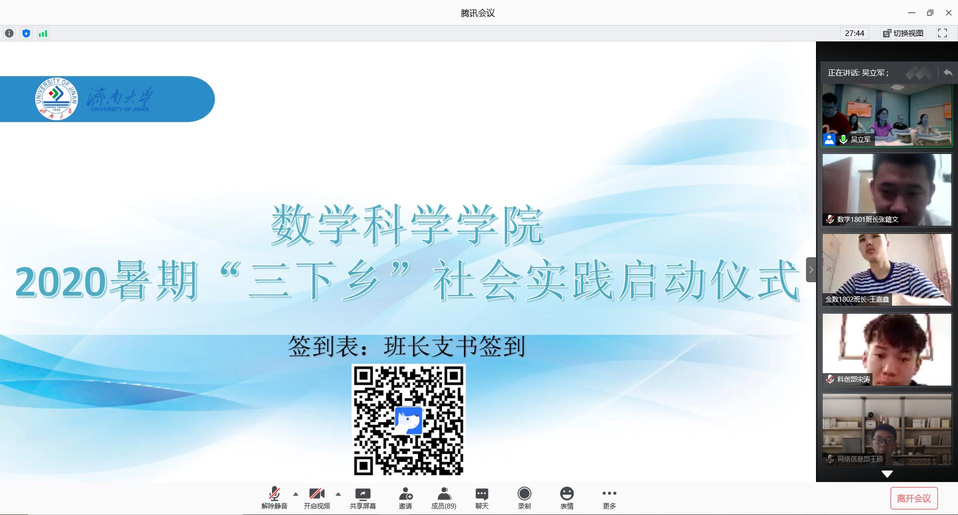 2020年暑期“三下乡”社会实践活动启动仪式在学院智慧教室举行。学院党委副书记、副院长张沂红,学生工作办公室主任屈昌雷、学院团委书记赵华磊,各年级辅导员出席启动仪式,17-19级班长、团支书,全体学生会成员参加启动仪式,仪式由辅导员吴立军主持。