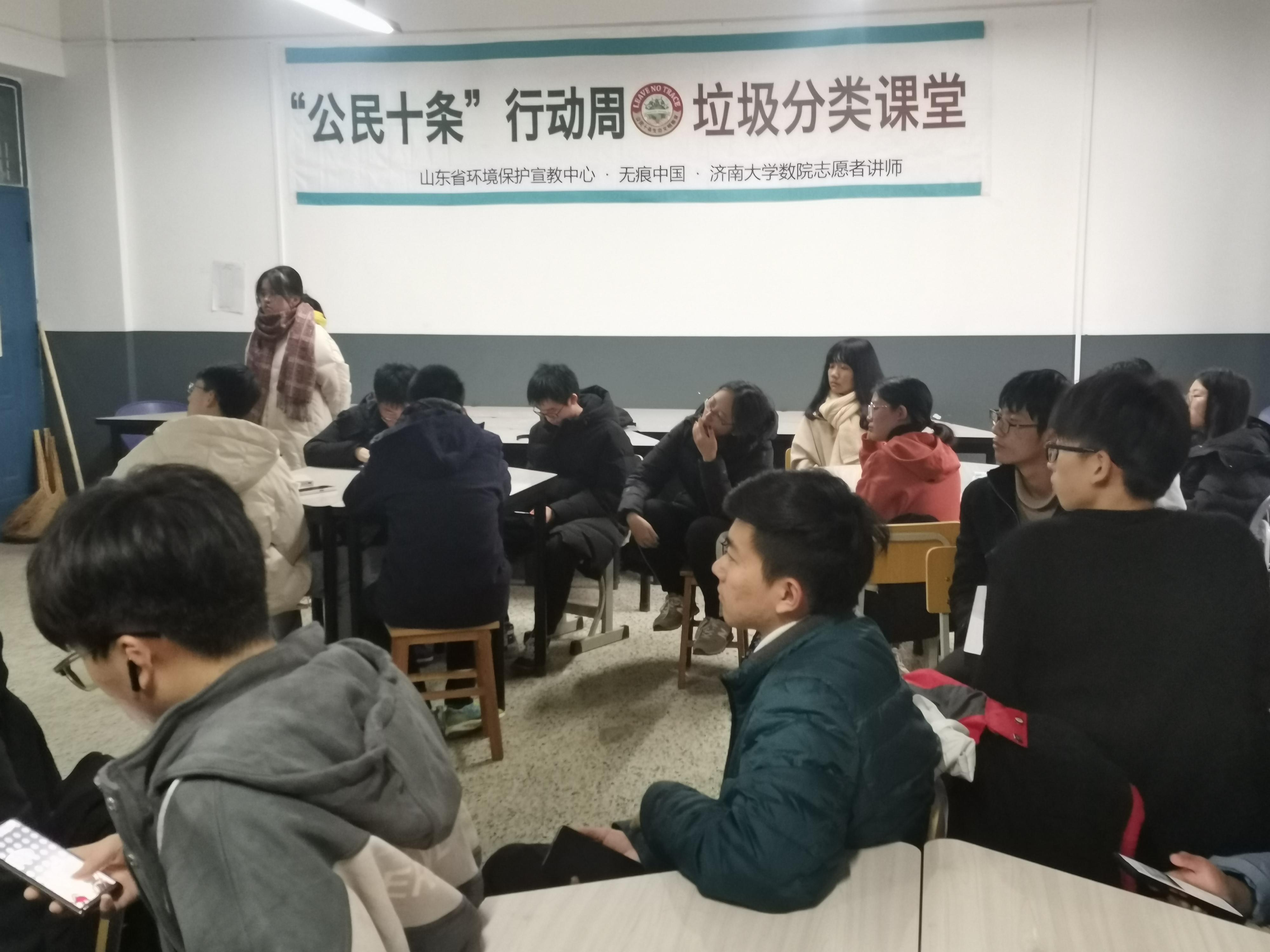 青年志愿者协会结合大学生的生活和需求,在原有的基础上共同设计了高校垃圾分类工作坊,将无痕垃圾分类课堂更加贴近高校生活。课堂上,陈佳胤(大熊猫)讲师通过“体验式、游戏化、在地化”的无痕环境教育方式激发了同学们的兴趣,同学们积极思考,踊跃参与活动。课程伊始,环境讲师播放了关于垃圾分类的视频,触目惊心的垃圾处理现状震撼了在场的每位同学。随后同学们开始了垃圾分类大赛,通过这个活动,激发了同学们学习传播垃圾分类的热情。环境讲师通过拟人的方法,向大家介绍了四种垃圾分类的方法。在课程的结尾,同学们就垃圾分类提出了自己的思考与问题,大家进行了积极的讨论。大家表示,通过这次活动不仅了解到了垃圾分类的知识,更引发了自己对人与自然关系的思考。随着下课铃的响起,本次活动圆满结束,同学们将自己带来的废弃物分类投放,践行了“人过无痕”的环保理念。
