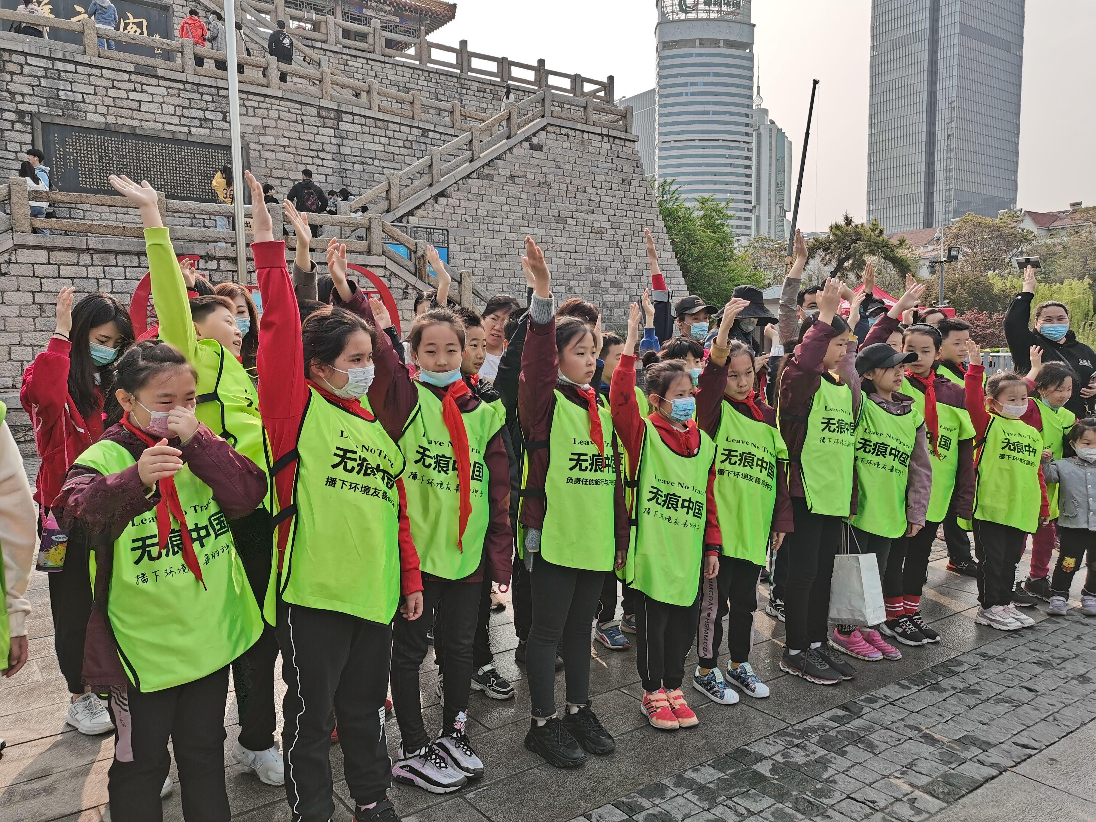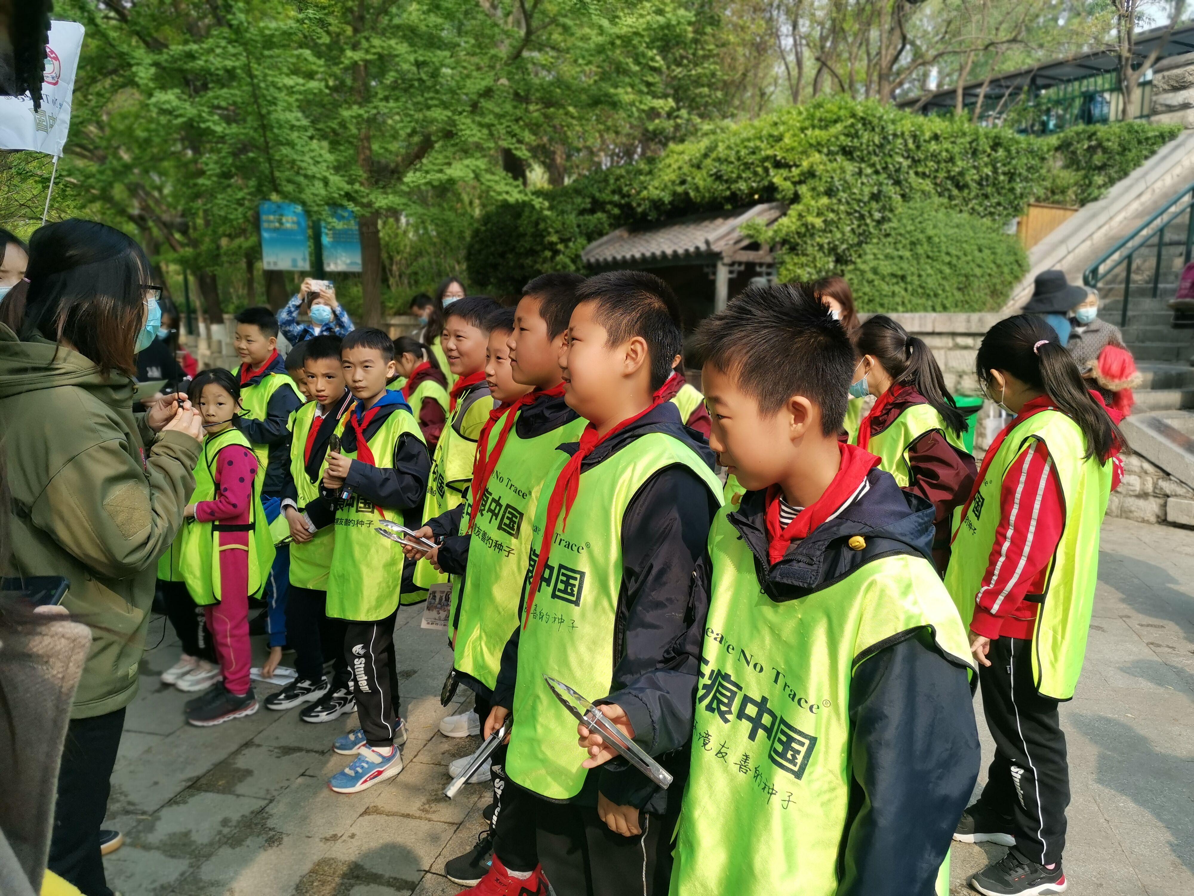 青年志愿者协会与文化东路小学2017级6班的小朋友们于4月10日9:00在济南市黑虎泉景区组织了“无痕”环境教育活动。在这次活动中,志愿者们变成小讲师,为文化东路小学的小朋友们认真讲解。