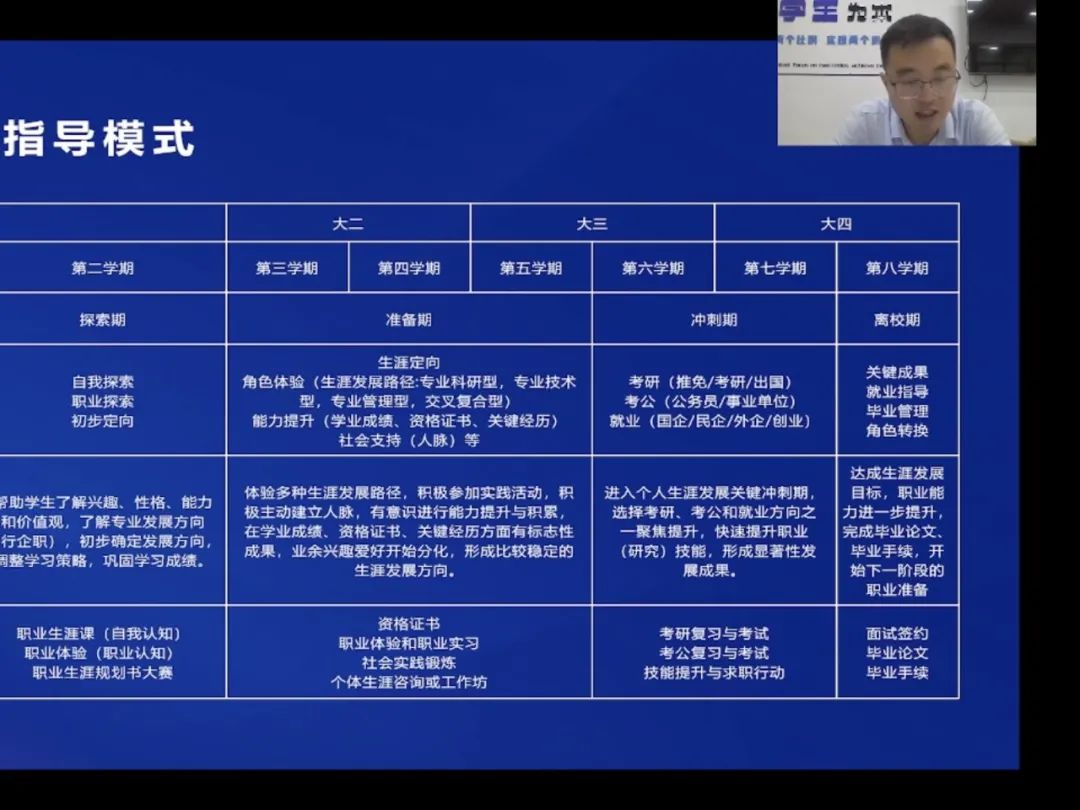 联合政法学院、物理科学与技术学院和水利与环境学院在线上举办了一场题为 “从高中到大学:觉醒、探索、选择和行动——基于生涯视角的大学生学业规划与生涯发展”的新生入学教育讲座。学院特邀张晶老师分享学业、职业生涯规划经验。