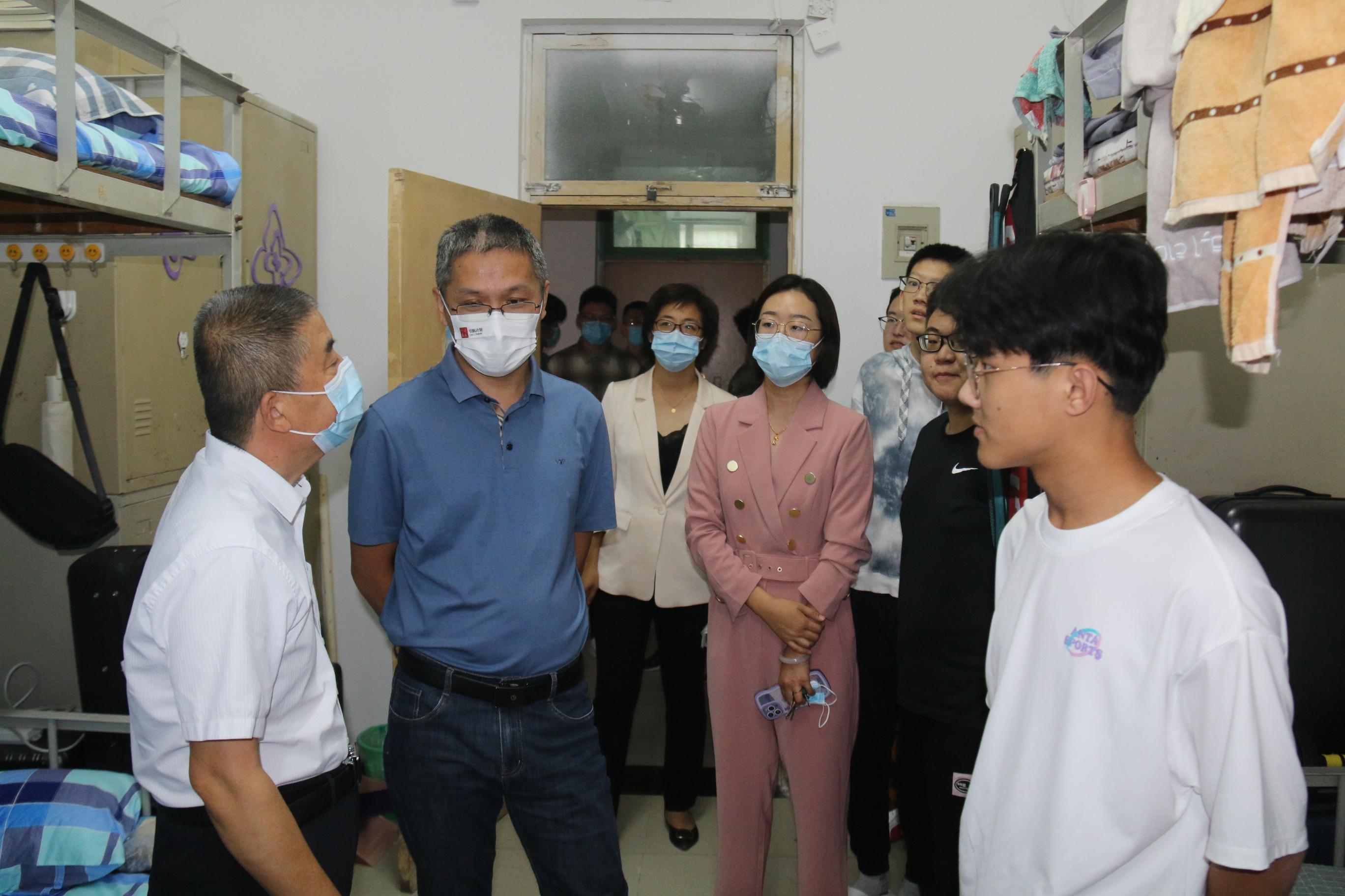 党委书记侯启海、党委副书记副院长张沂红、学院全体辅导员、以及各班班主任深入学32、27公寓,走访慰问新同学。