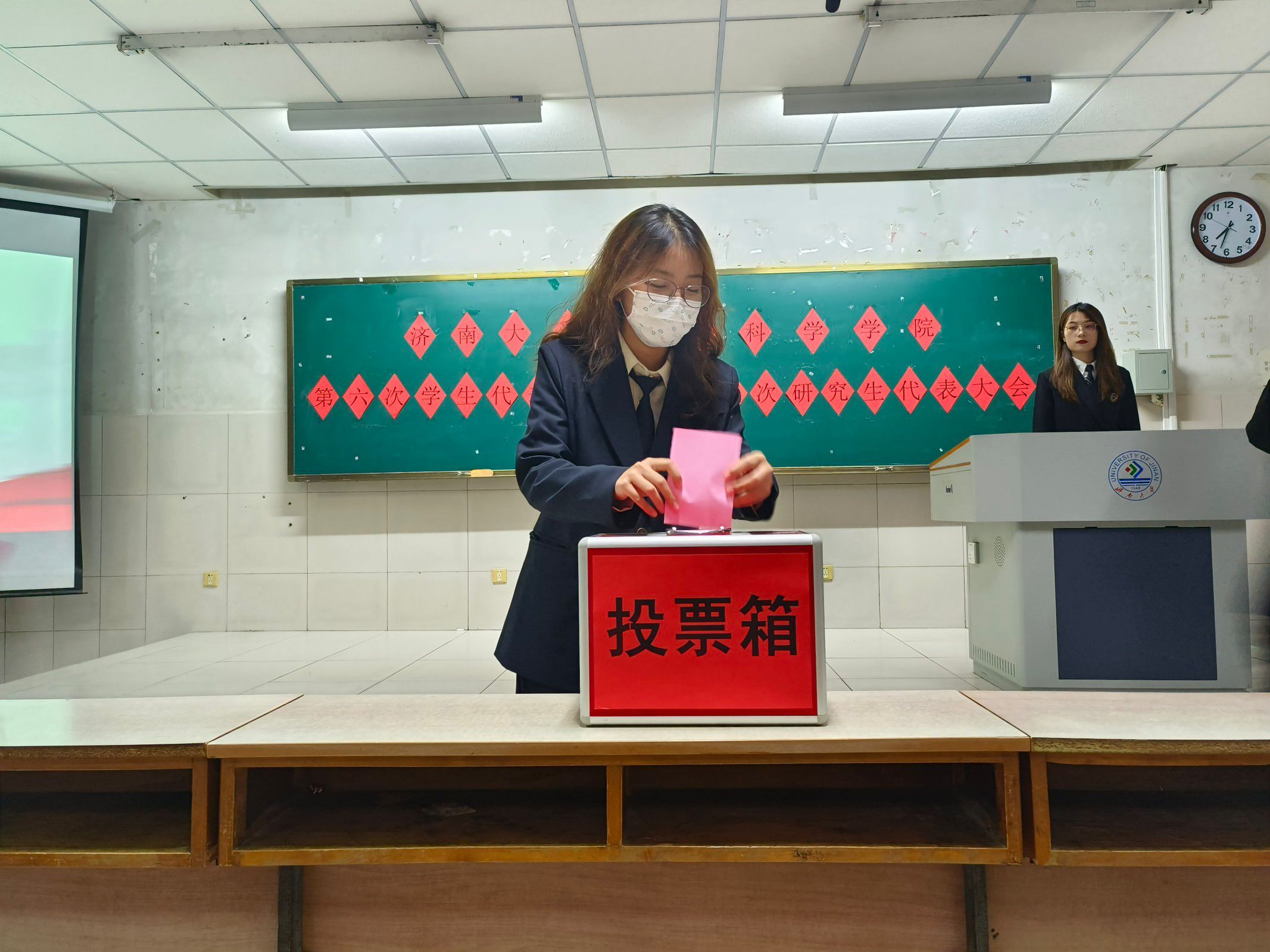 学、研代表选举办法》的规定,采用差额选举和等额选举的方式正式对学代会代表、研代会代表、常任代表进行了选举。整个选举工作在团委书记于洋老师的领导下和监票人的监督下,严格按照选举办法进行,选举结果合法、有效。选举以投票方式进行保证了选举的公平性与合理性,选举出了能反映同学诉求、表达学生意愿、具备履职能力的代表,从而在其带领下把握时代主题、勇于自我革新,增强工作自信。