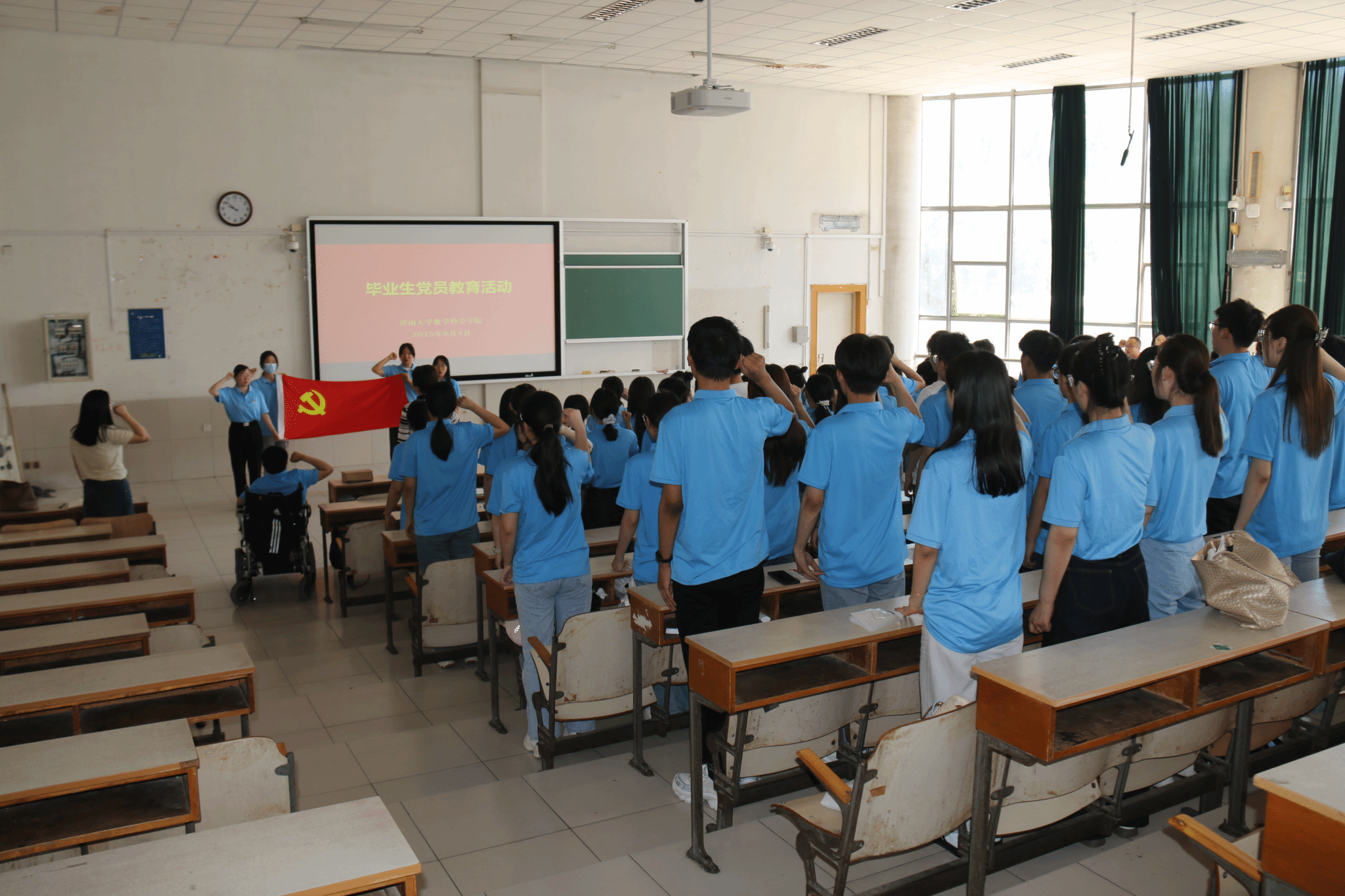 在毕业生代表、2025年“学生党员标兵”宋中华带领下,全体毕业生党员面向党旗庄严宣誓,铭记入党宣誓时的郑重承诺和坚定决心,重温入党初心。全体毕业生党员依次在印有“树立廉洁心 践行廉洁事 争做廉洁人”的条幅上郑重签上自己名字。