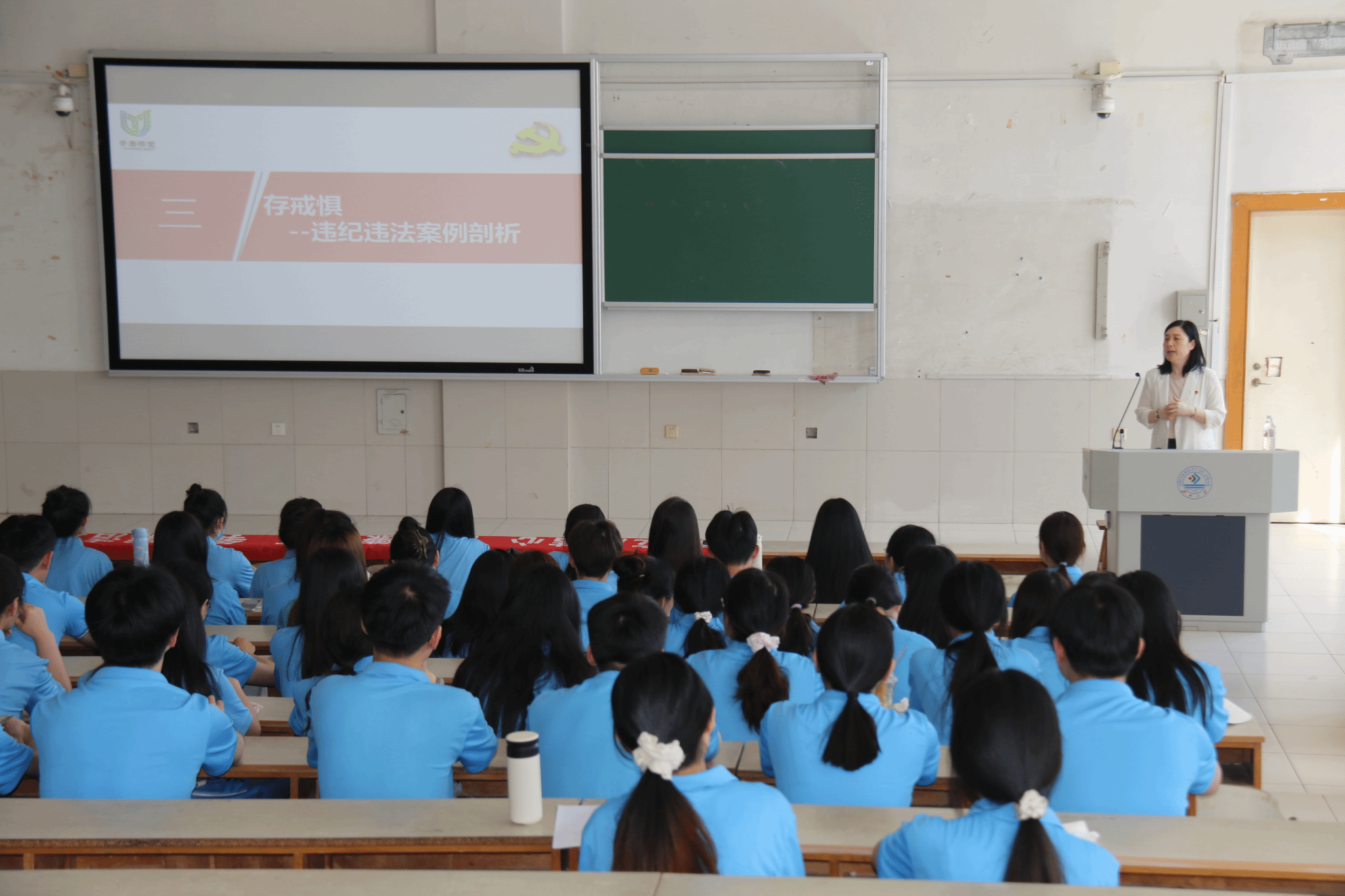 崔英静以“学纪律、守规矩、作表率”为题讲授了一堂生动的廉洁教育思政课。从“明大势—党中央高压反腐的决心”“知法度—党的纪律解析”“存戒惧—违规违法案例剖析”“定方向—服从组织、严守党纪”等四个方面深入讲解,希望全体毕业生党员能够严于律己、做纪律上的表率,始终秉持“廉以修身,俭以养德”的廉洁精神,勿忘理想信念,承载强国梦想,让廉洁与青春同行相伴,为祖国建设事业贡献力量。