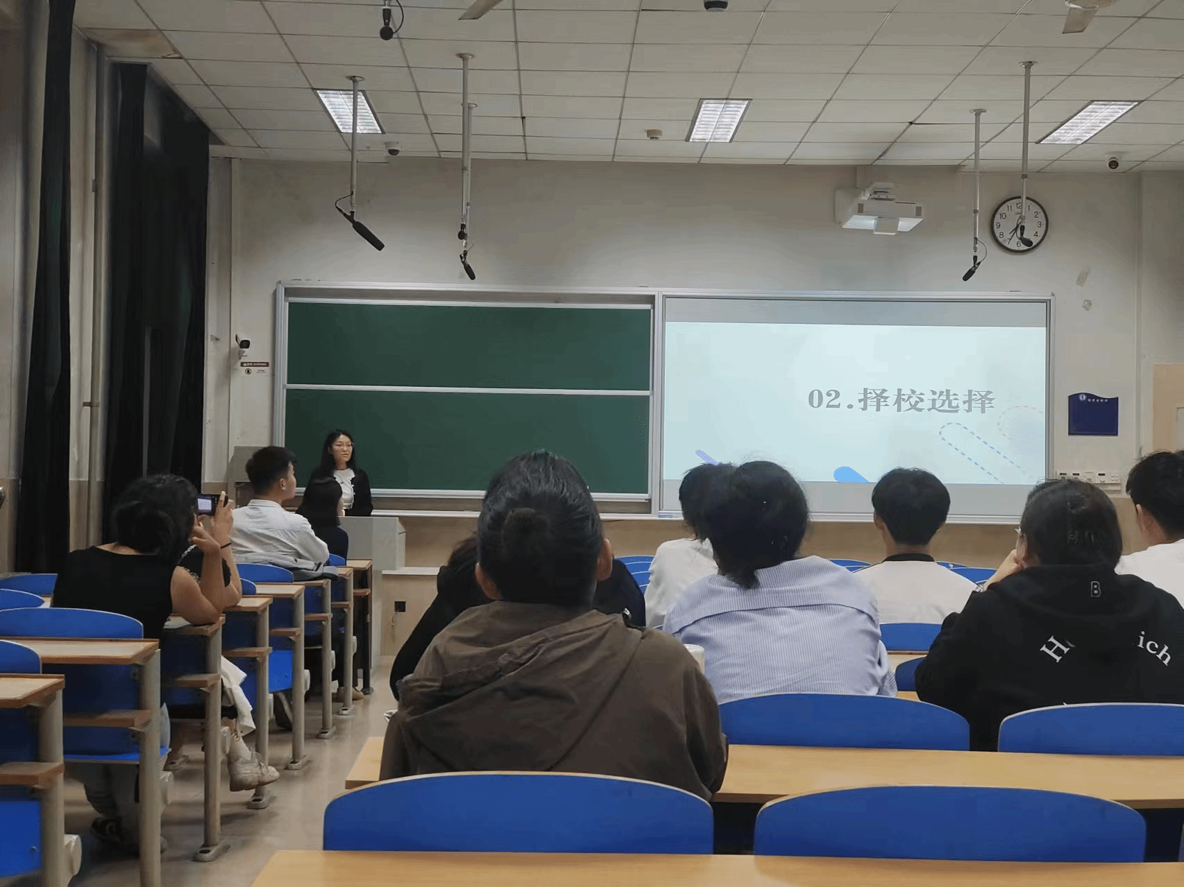 靳副院长从理想信念、人生追求、专业成才、职业竞争等四个方面展开讲述,用幽默风趣的语言以及详实素材给同学们提供了有效应对考研的策略和要点。他鼓励同学们结合自身情况选择报考合适的院校,积极投入考研行动。