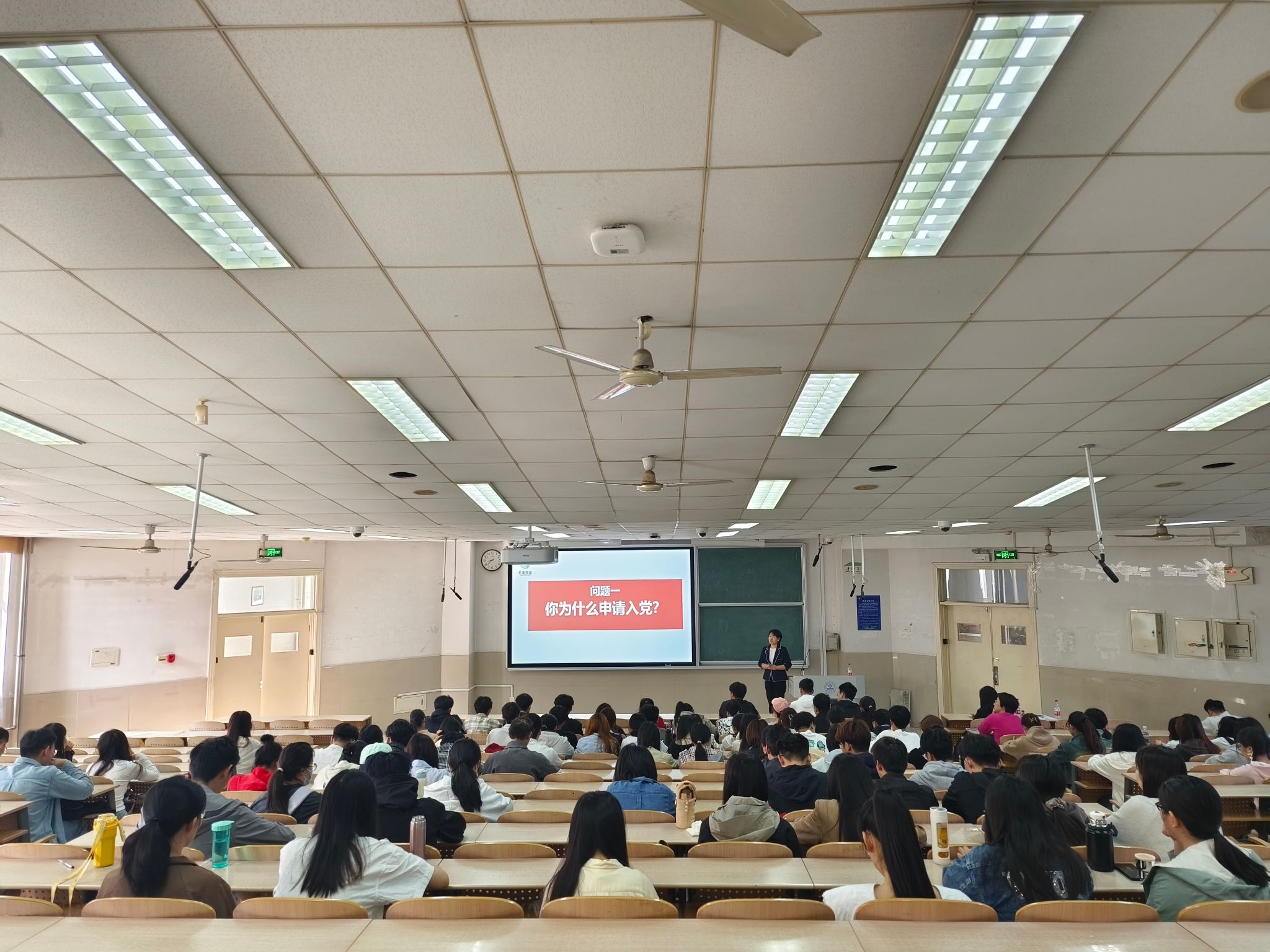 党委书记崔英静主持,学院师生党支部书记、全体学生党员、第44期入党积极分子参加。